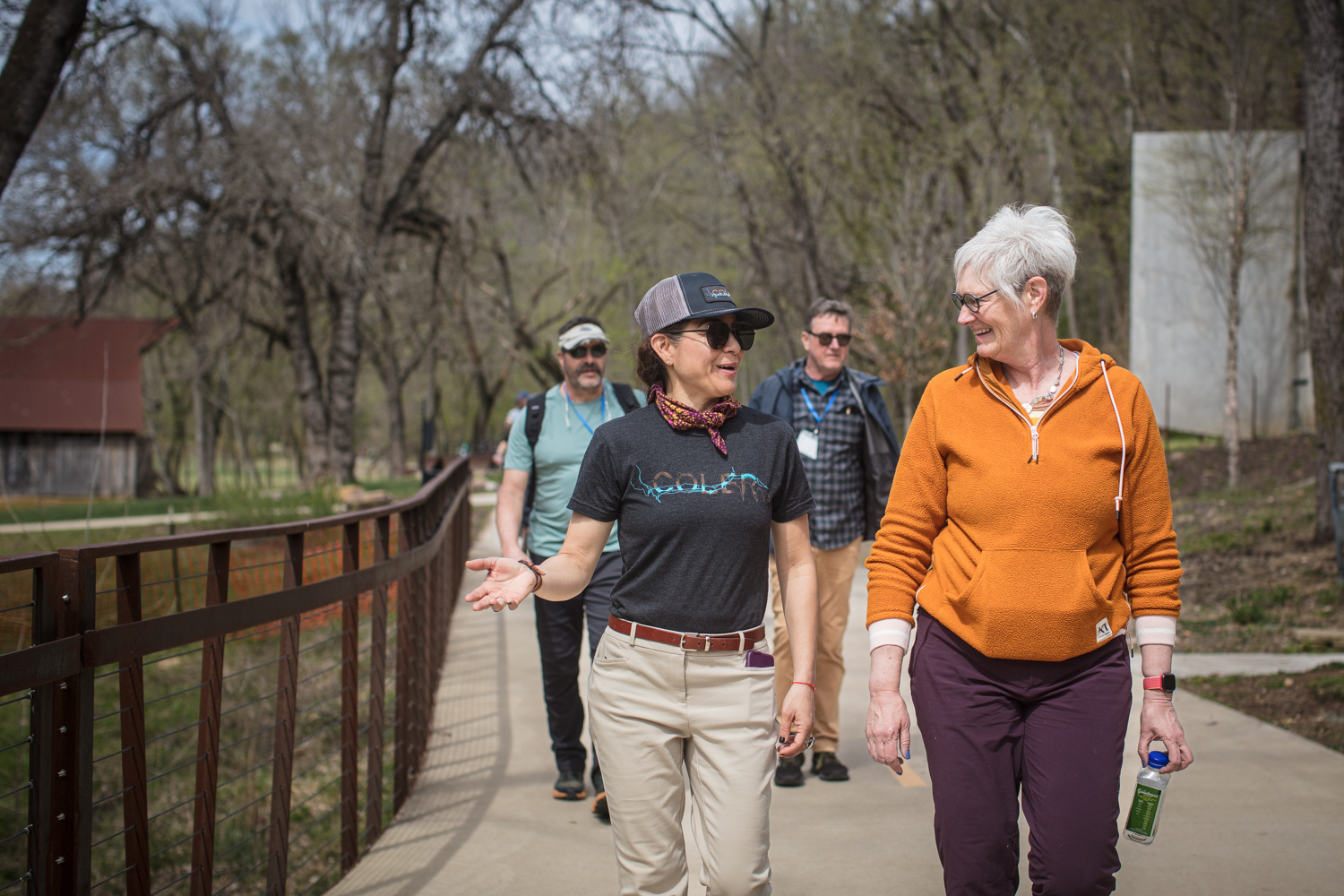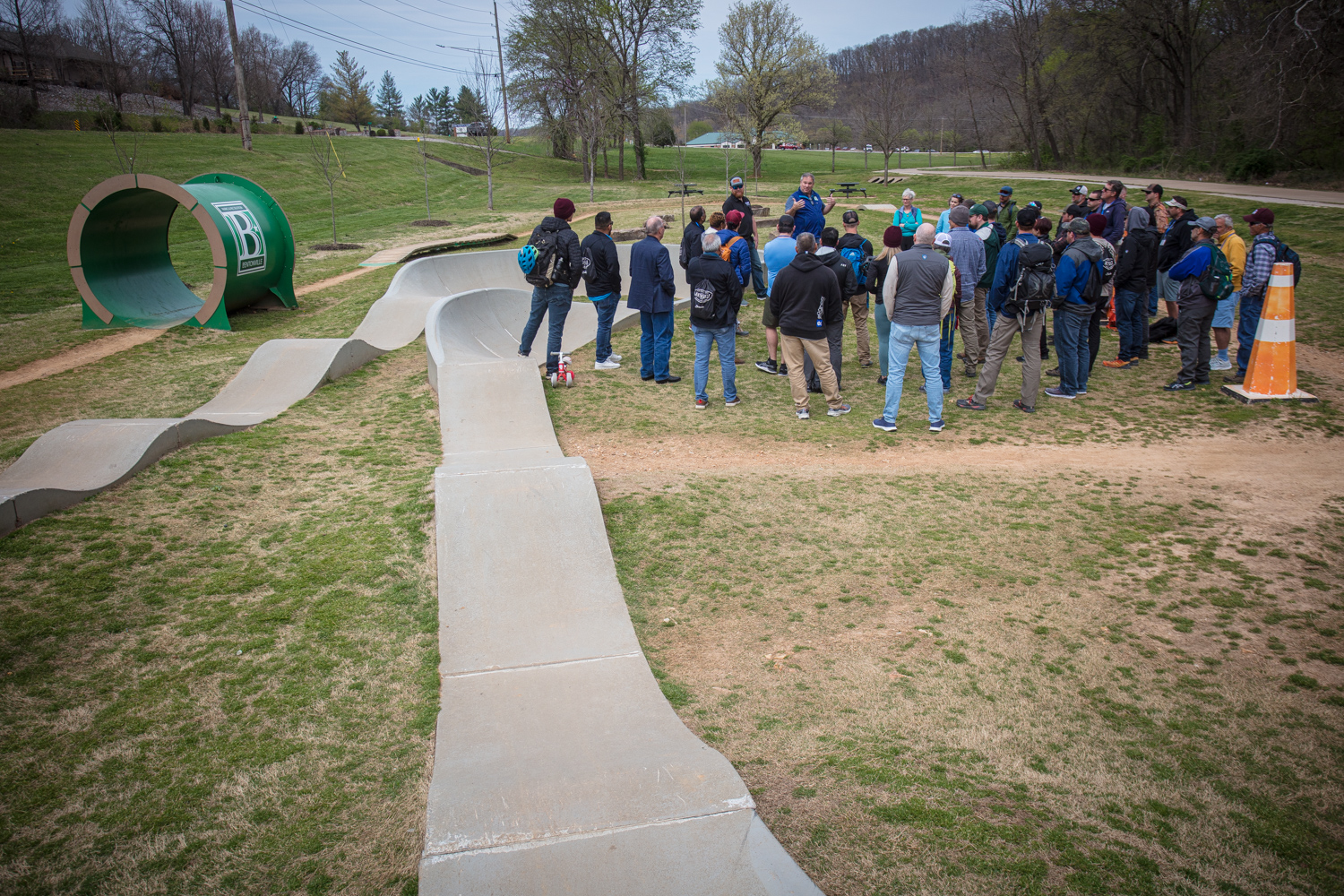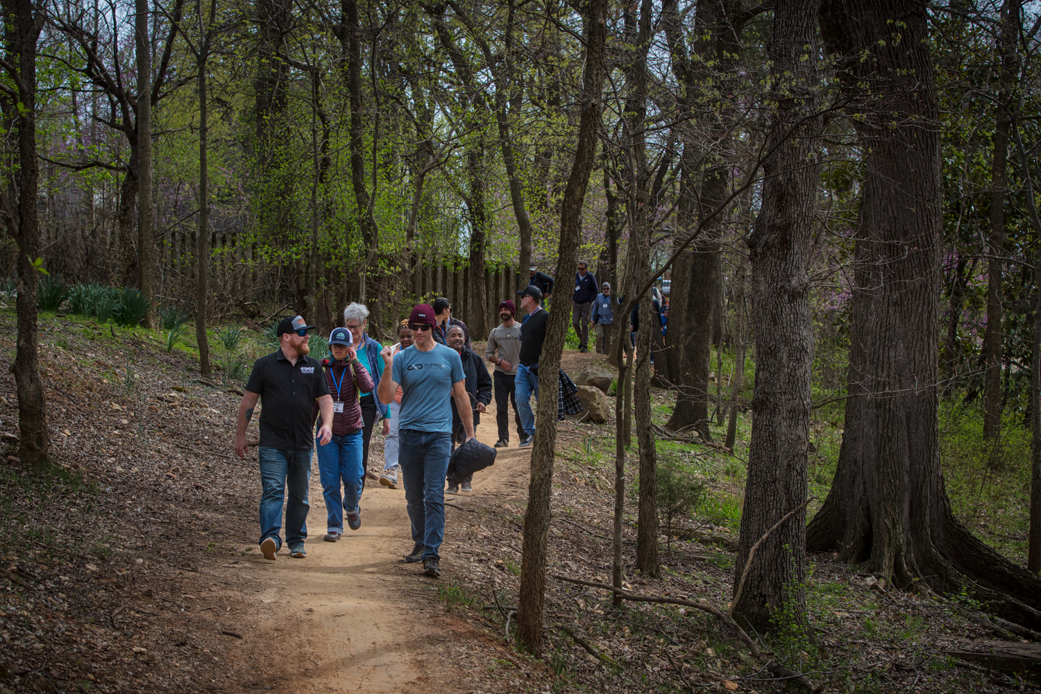 The group then visited Thaden School, an educational institution that incorporates a bike program into their curriculum and witnessed the school's asphalt pumptrack in action. The group met David Wright of Bentonville Parks & Recreation at the Bentonville Bicycle Playground, toured the area and asked questions. Day one ended with a walking tour of the popular All-American Trail, whose trailhead starts in downtown Bentonville and connects to the multi-phase Slaughter Pen system.