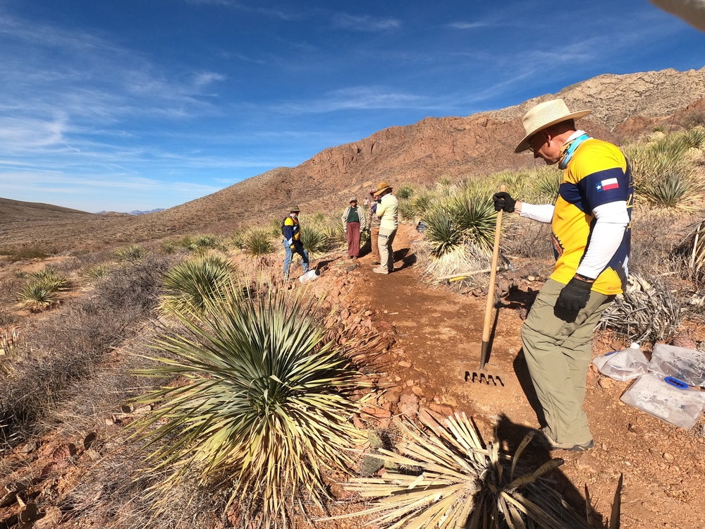 150 miles of trail wind through a tapestried landscape of sunbaked rock stacks, tenacious desert flora, lone collared lizards, the occasional herd of mule deer, and as of late, bighorn sheep. But preserving these trails within this rugged terrain requires a dedicated effort. As Lydia Pagel, park interpreter at Franklin Mountains State Park, points out, "We have almost 150 miles of trail...and we have no one on staff who [does] full-time trail work."