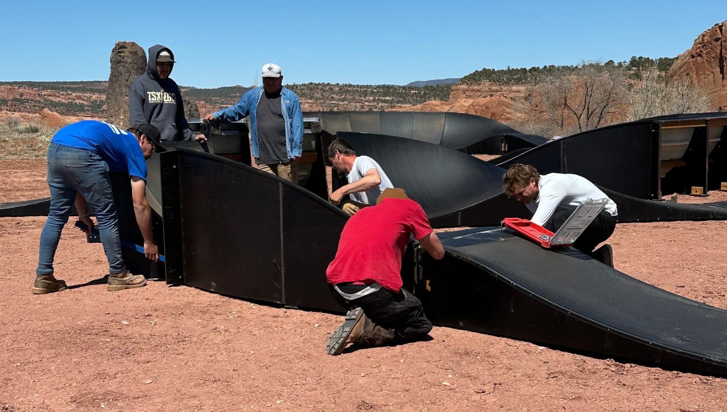 Five pump tracks installed and ready-to-ride in five consecutive days? Sounds like a pipe dream! But in April 2024, five Navajo Nation communities made it happen through cooperative planning, committed partnerships, and deep collective engagement.