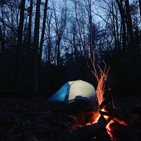 As the sun started to fade away, we whipped up a small campfire and had dinner. Miles then pulled out all the necessary ingredients for s’mores from his backpack—his contribution to our food for the evening. We ate our body weight in s’mores, hoisted our remaining food and decided to turn in for the night.