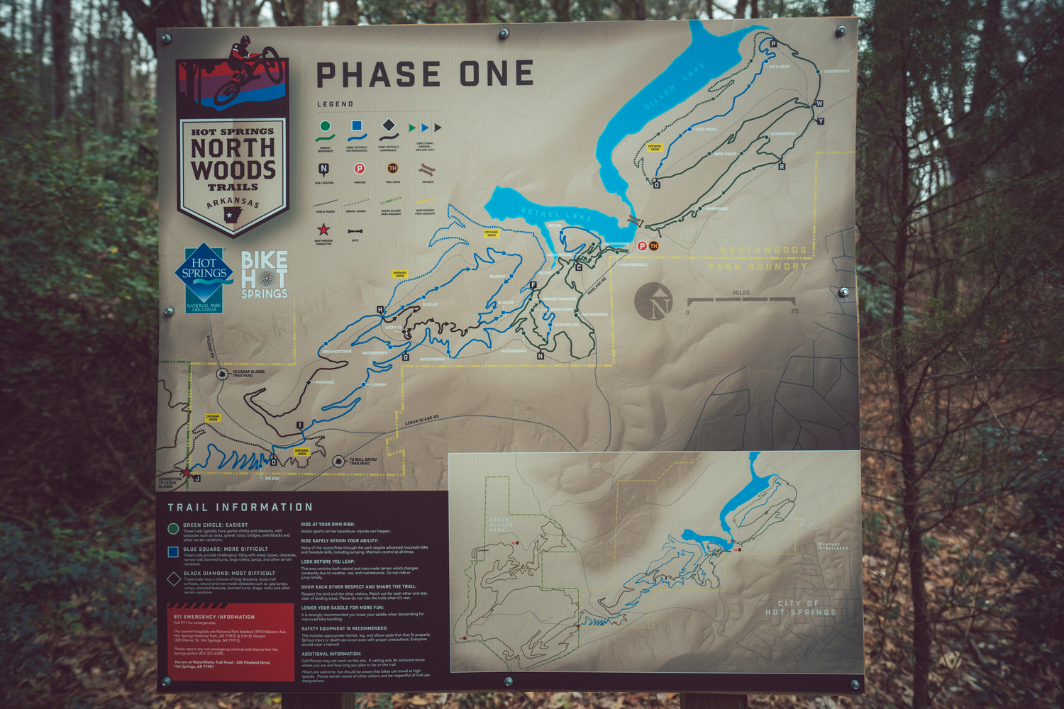 Before Northwoods, local Hot Springs cyclists cut their teeth on the hand-built trails at Cedar Glades Park. This park was developed on unused land adjacent to the county landfill and due to the landfill shutting down. “To close down a landfill, you need a perimeter,” explained AJ Johnson, Cedar Glades Park Director, “and to fulfill that requirement and make a nice place for Garland County residents, Cedar Glades Park came to be.” As the park developed, the county received grants and slowly added miles of multi-use trail, resulting in 10 completed miles. AJ Johnson has been the steward of those trails for 12 years. “They didn’t want me to add more, just maintain what we had—as we’d get the budget for it, I’d add a bit when I could,” said AJ.