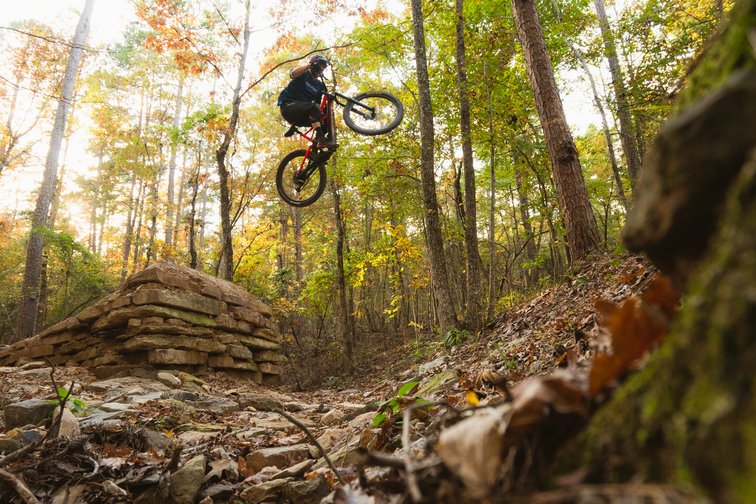 Phase I of Northwoods called for 15 miles of progressive trails that spanned the gamut: machine-built jump trails and flow trails, green trails, hand-built technical trails, enduro trails, and cross-country style loops. This diverse mix of trails gave riders the unique opportunity to progress their skills from beginner-friendly riding through to technical terrain, all in one park. To sweeten the situation, Garland County-owned land met up to the city property boundary resulting in Cedar Glades and the future Northwoods Park connecting together easily. “Instantly, because of that connection, we had over 25 miles of trails on the ground [once Northwoods was completed,]” said AJ.