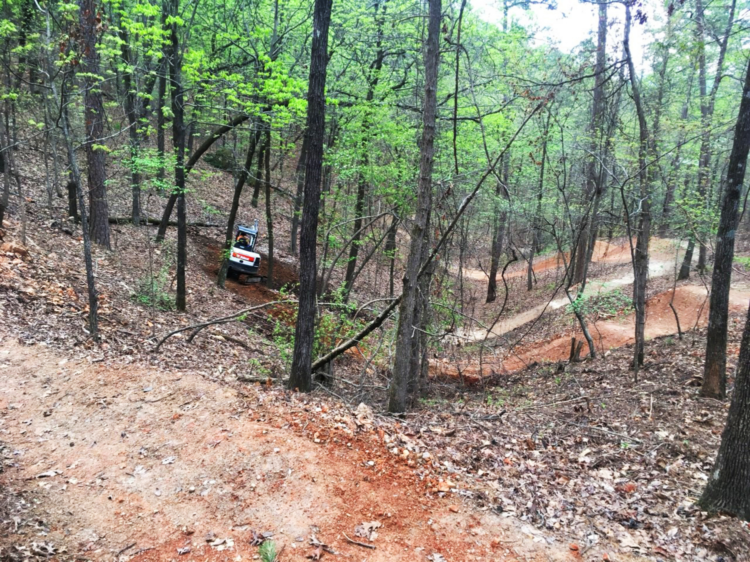 In Winter of 2020, a major milestone to the system came in a 0.6-mile package. At the start of the Northwoods master plan in 2017, one of the key trailheads that were identified to provide ride-in access from within the community passes through National Park Service land. Hot Springs National Park, one of the oldest national parks in the country, is adjacent to the city of Hot Springs and compromises much of the existing green space surrounding the city. Building a new National Park Service trail that’s open to bikes is no small lift. IMBA Trail Solutions, Visit Hot Springs, National Park Service, SE Group and the Arkansas State Historic Preservation Office all worked together to make the 0.6-mile trail, The Pullman Connector, possible through the Bike Rule authorization and NEPA process. With the commitment of the National Park Service, this process was expedited and only took two years which made this trail connection to downtown possible.