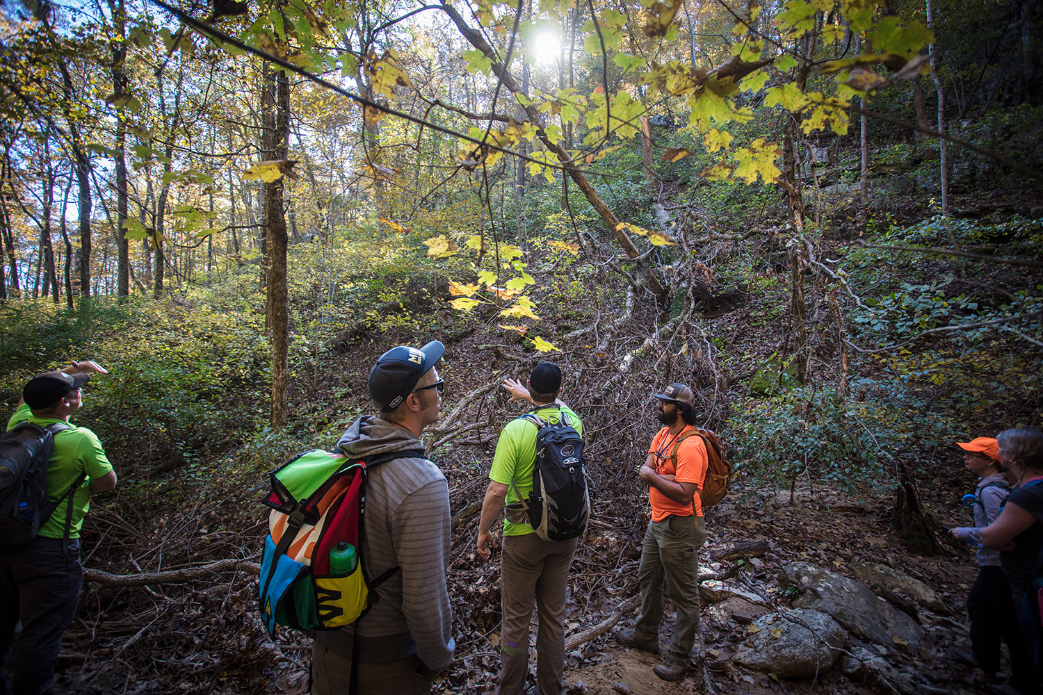 The newest addition to the quiver of trail systems in Chattanooga proper is located just southwest of downtown, a 10-minute drive, in Lookout Valley. The master plan for this 300 acres calls for 12 miles of beginner-to-intermediate trails in a network called “Aetna Mountain Trails.” Thanks to a land donation from Black Creek Development, the Tennessee River Gorge Trust has secured this large forest area. “This is one of the closest wilderness areas in the immediate Chattanooga area,” said Eliot Berz, Tennessee River Gorge Trust’s Conservation and Access Director.