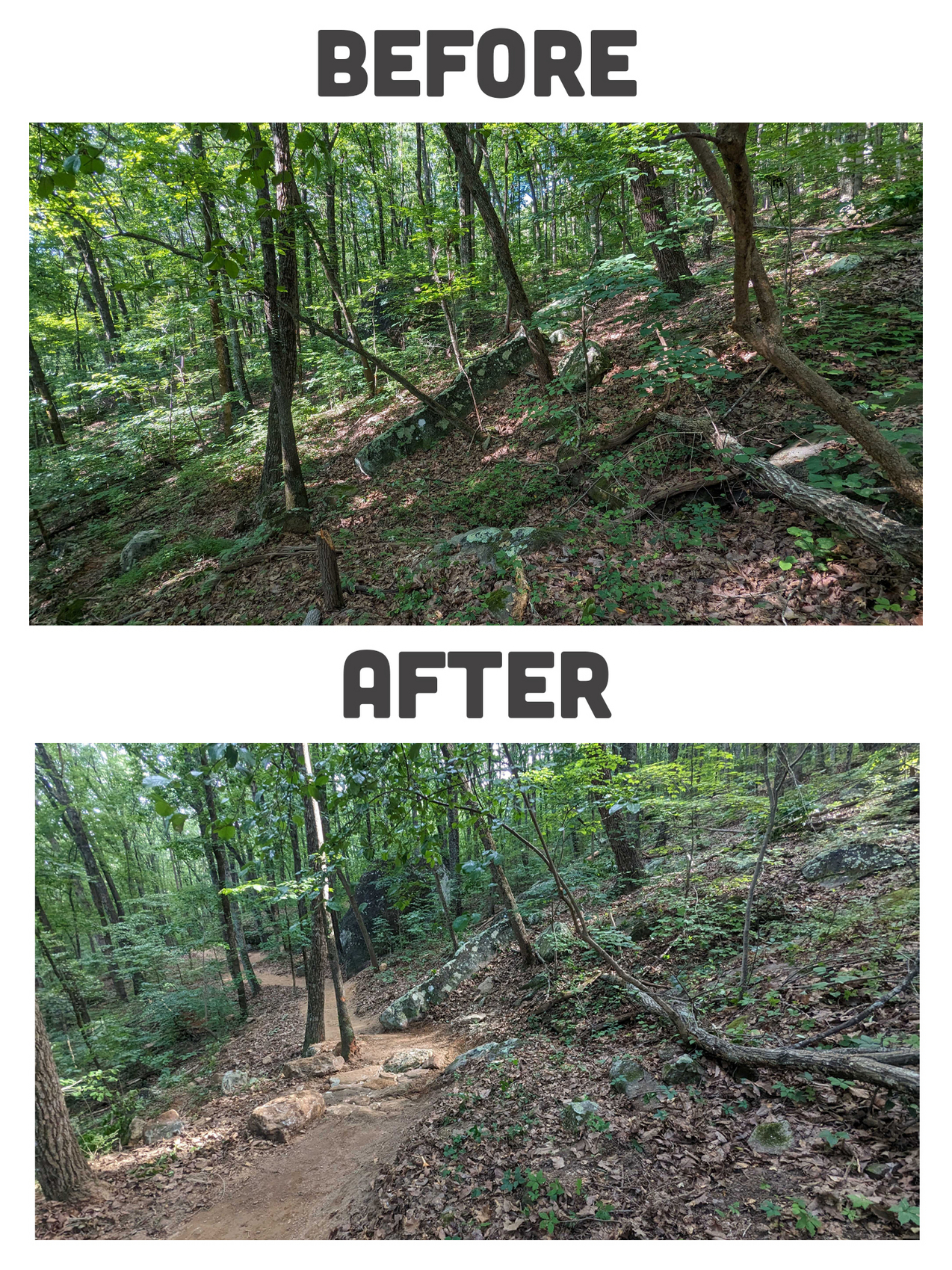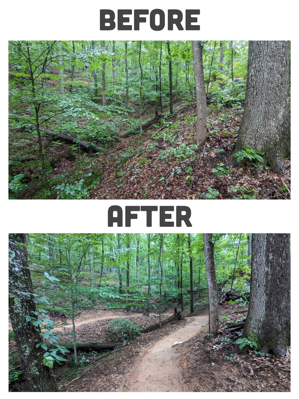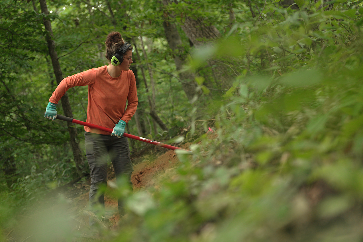 From there, it was all fundraising. “This project wouldn’t be possible without the support of Black Creek, Lyndhurst Foundation, IMBA, Tower Community Bank, Rock Creek, Chattanooga Tourism Co, Fox Factory, and RH Aviation,” said Eliot. A unique partnership to highlight was with Tower Community Bank – they agreed to donate a portion each year to go into a revolving annual maintenance fund for the trails.