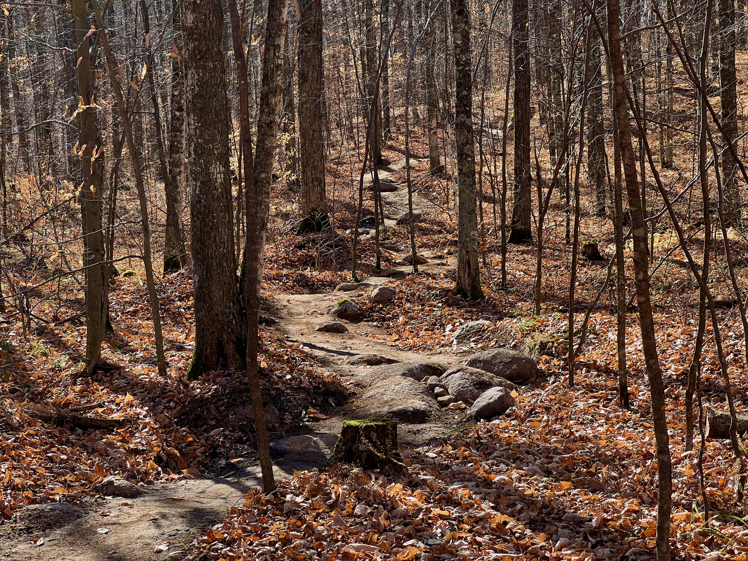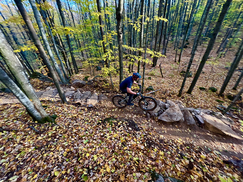 IMBA Trail Solutions’ Mike Repyak hit the ground alongside IMBA Trail Solutions planners in October of 2021 to launch a concept plan in collaboration with county officials and MAMBA. “Every corner of the property is stunningly beautiful; around each hillside, we traversed glacial terrain littered with glacial erratics while viewing the river, waterfalls, and lakes from many different vantage points,” said Mike. “The existing parks are gateways to this special landscape that have been managed for forest health and recreation. Working on this canvas was exciting and at times challenging, but that is what we like knowing that the trail layout will make for engaging trail experiences for a range of park visitors.”
