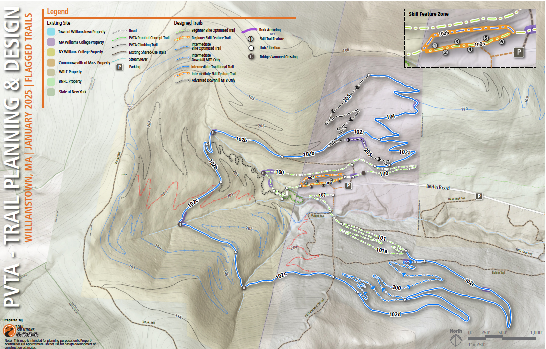 The TAG enabled Purple Valley Trails to partner with IMBA Trail Solutions and develop a comprehensive trails master plan for the Berlin Mountain area, focusing initially on over 800 acres of college and city managed land. This professional planning was crucial. "I don't think we would have come up with something as thoughtful and as well designed without the IMBA plan," Collins emphasizes. The plan outlines roughly 25 miles of potential trails, with the first phase detailing nearly 8 miles.