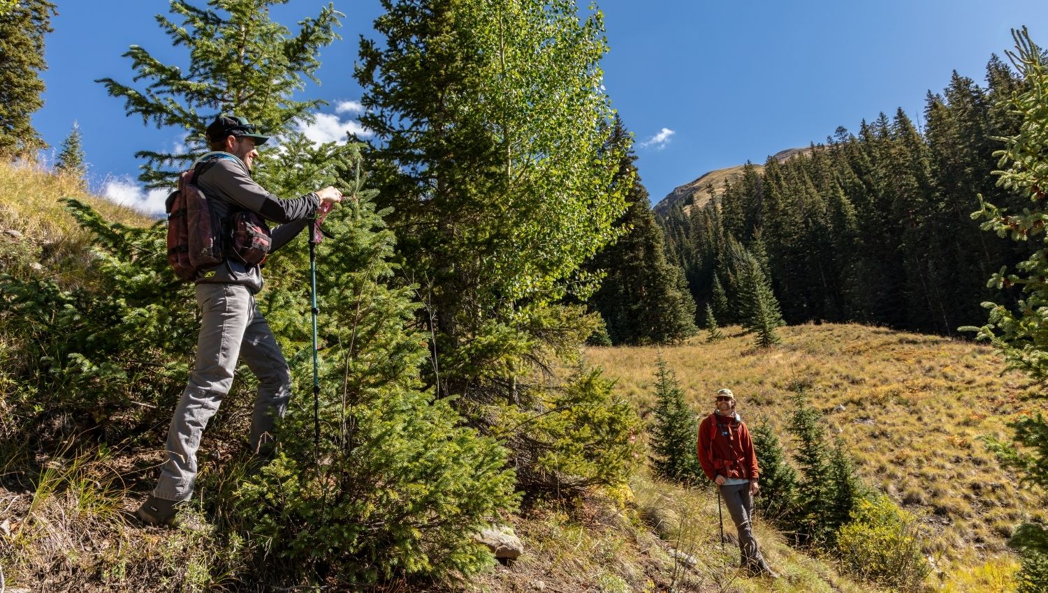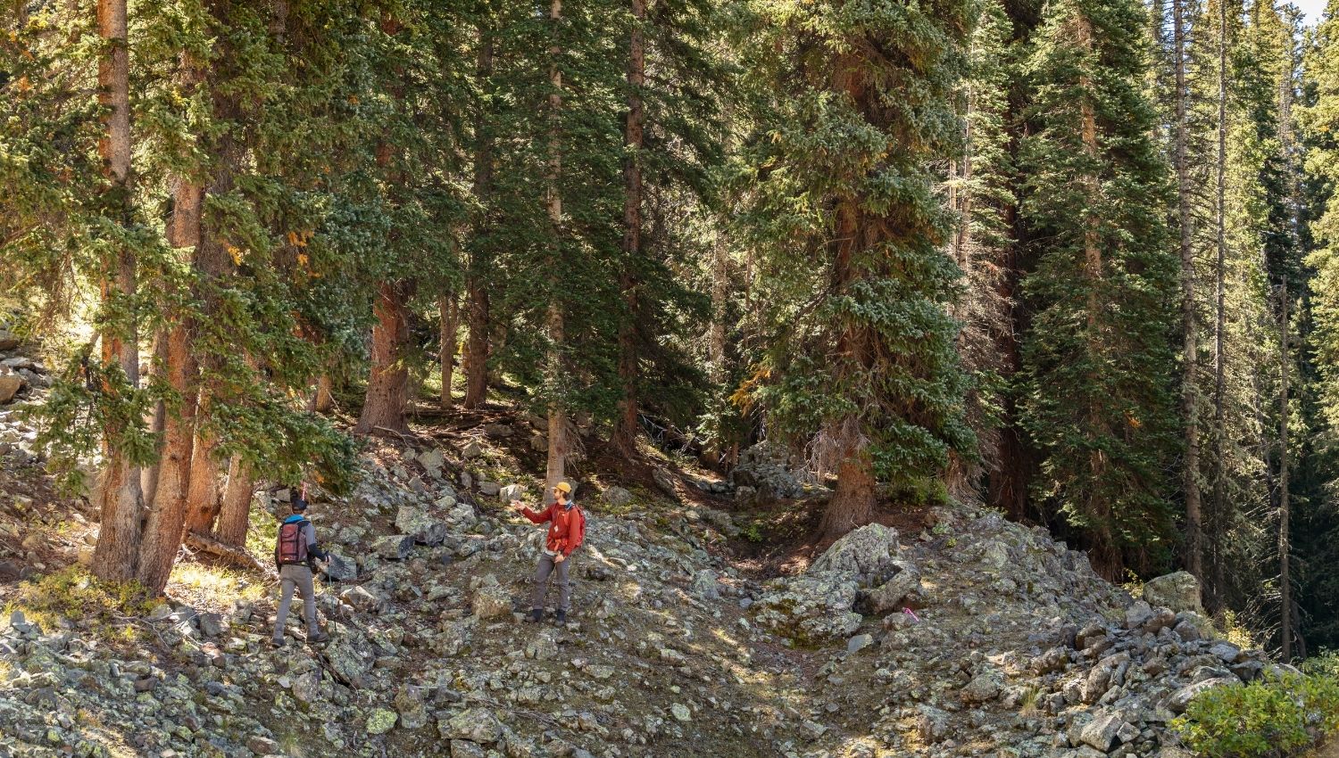 By the summer of 2021, IMBA was back in the San Juans. IMBA’s Planning & Design team began scouting and flagging the Phase 1 alignment, meeting with the new BLM recreation planner and SSTS board members to refine access points. When the proposed climbing trail hit a boundary pinch point, IMBA helped SSTS work with a neighboring landowner to find a route across private property, walking the hillside together, clinometer in hand, to find the best line. That collaboration not only solved a technical problem but built community trust and new stewardship among neighbors.