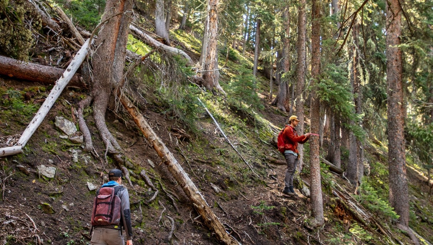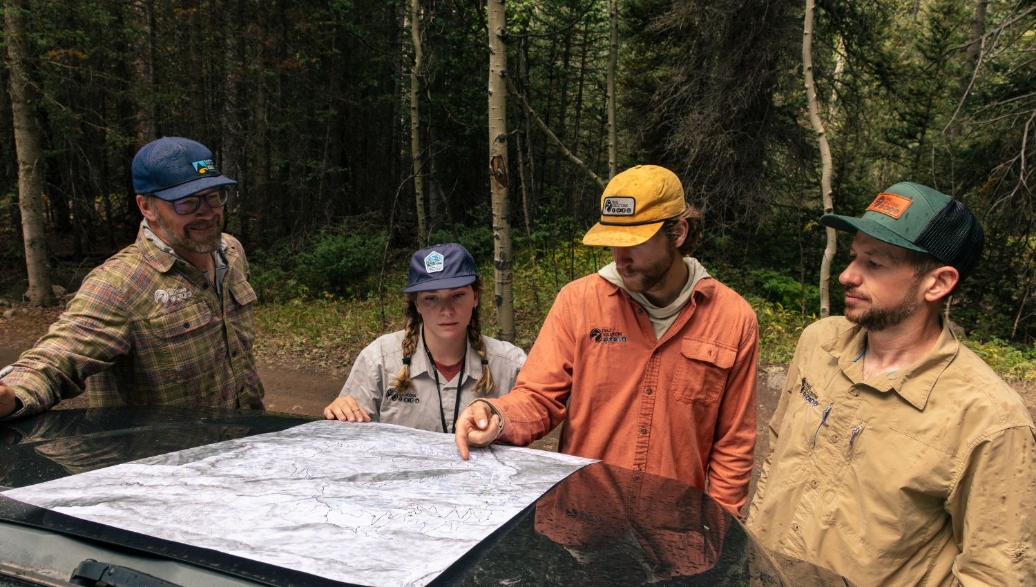 In 2022, SSTS secured a grant to move the project forward, though new wildlife concerns required plan adjustments. IMBA and SSTS revised the design to protect elk habitat and address visual and environmental considerations. IMBA construction crews took BLM classes to learn to identify and preserve Snowshoe Hare and Lynx habitats. Meanwhile, IMBA Trail Solutions’ work at nearby Arapahoe Basin offered a valuable real-world classroom: several SSTS members (helicopter pilots working at the ski area) watched IMBA trailbuilders in action from above and on guided rides, deepening their understanding of high-elevation trail construction.