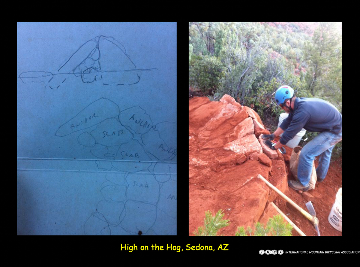 Enter a pivotal moment: IMBA was invited to teach an advanced rock armoring and stonework class. The determined focus centered around a particularly "steep and eroded" turn on the "High on the Hog.” Lars Romig, then president of the Verde Valley Cyclists Coalition and still a key figure in their trail efforts, along with U.S. Forest Service representatives and local builders, participated in what Joey describes as a three to four-day endeavor.