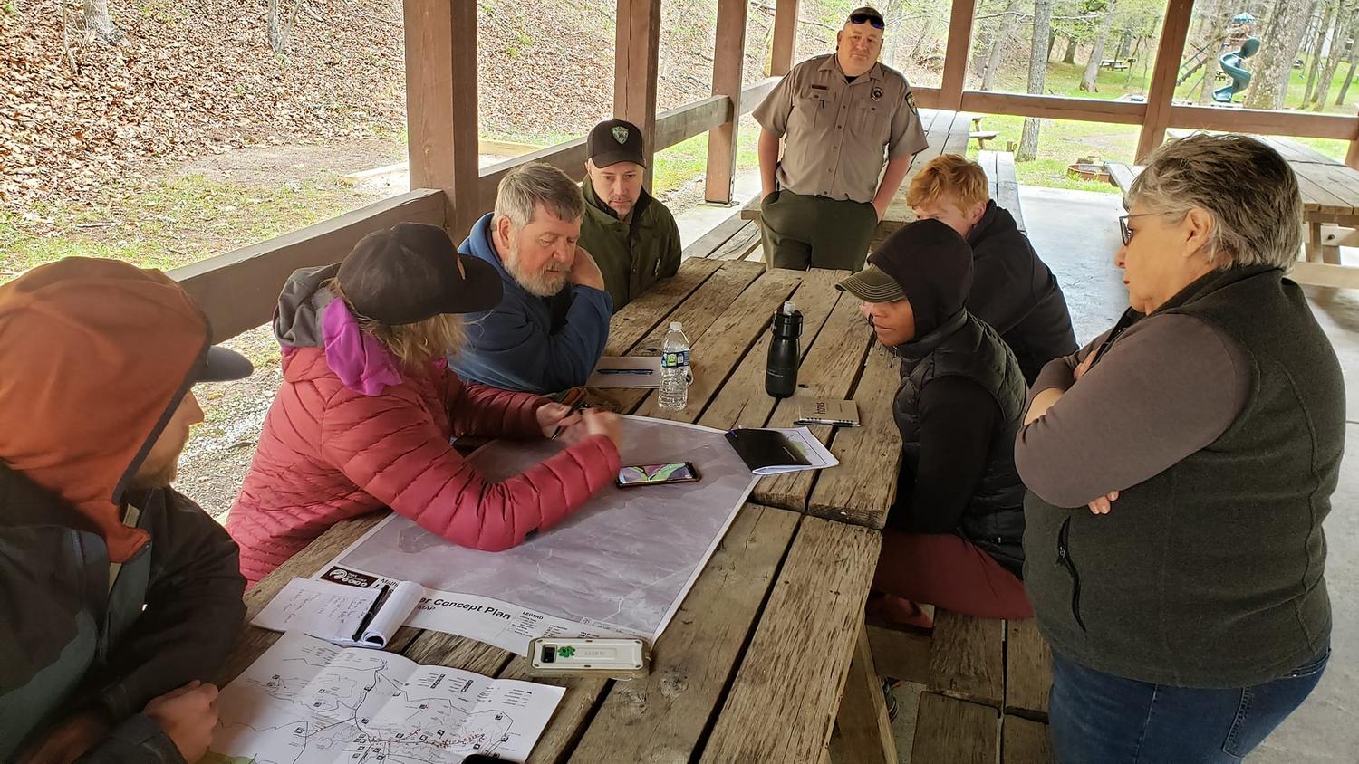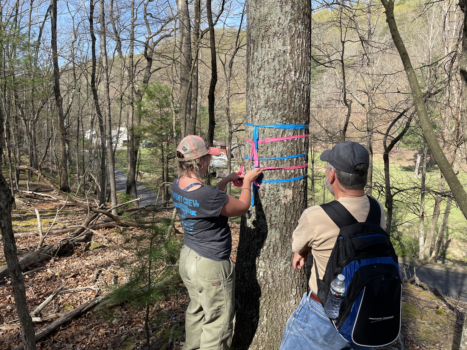 After a project kickoff in late March, the IMBA Trail Solutions team was on the ground swiftly by mid-April in Mathias, WV for assessment of existing trails, ground truthing specific sites of interest, and flagging new trails. Working in the tough to access north-end of the park, IMBA Trail Solutions Project Manager Liz Grades and Planner Matt Brabender designed three miles of beginner/intermediate trails that form a lollipop loop. “Conceptually, there’s a possibility for 25-30 miles of new trail in the future,” said Liz.