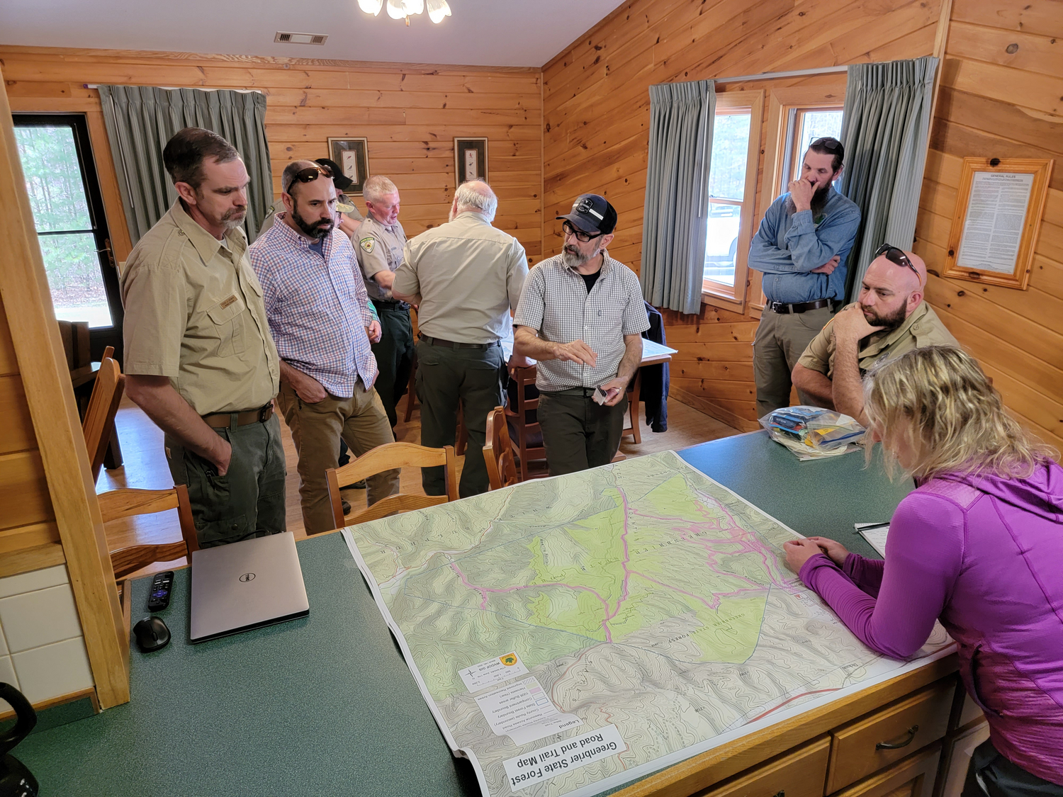 It’s a little like detective work discovering interesting locations on site, points of interest like views, unique site features and history, rocks, and fun terrain for trails. I am also looking for site constraints and places not suitable for trail development. It’s important to understand how things we are seeing in our mapping and desktop analysis translate to the real world and how to incorporate some of the unique things we find while on a site visit into our trail plans and designs.